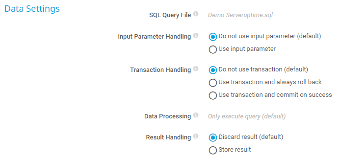 • Do not use imput parameter (default): Execute the SQL query file without using variables.